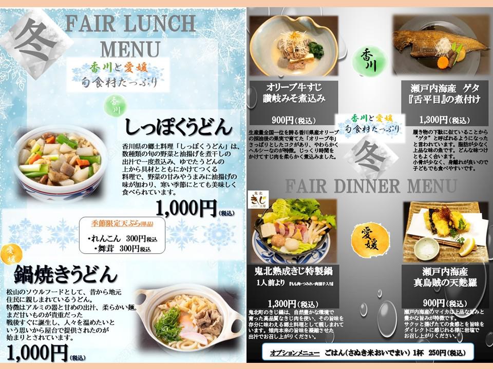 ランチメニューは、香川と愛媛の冬のあったかいおうどん。